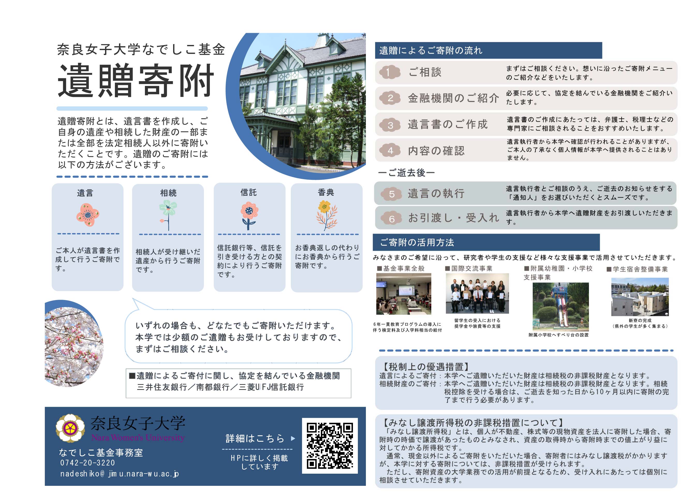 みなさまの想いのこもったご寄附は、奈良女子大学のこれからを創ります。みなさまの想いを未来へつなげるお手伝いをさせていただきたく、奈良女子大学への遺贈寄附についてぜひご検討ください。