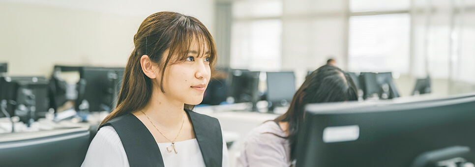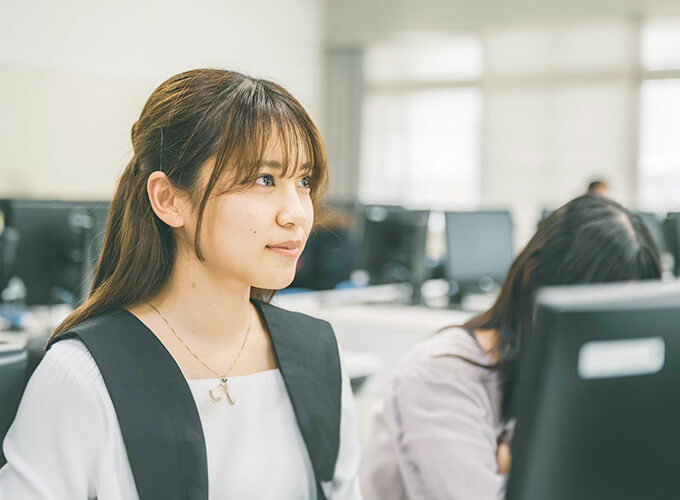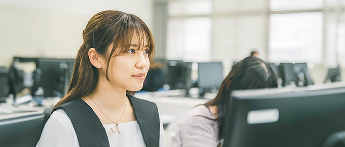1、2年次は多彩な基礎科目群の中から、学科共通科目や3つのコースの専門基礎的な内容を幅広く学習します。3年次にコース分属をした後も、ブリッジ科目をはじめとして、他コースの科目も受講でき、自分の興味関心に合わせた学習を進めることができます。