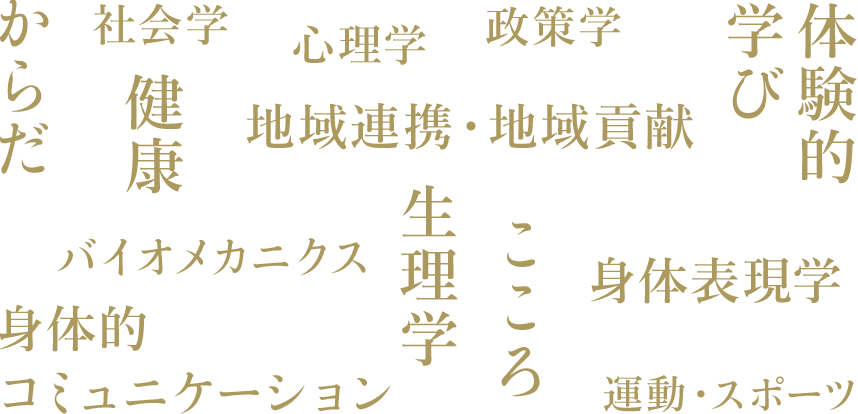 また、スポーツ行動における心身相関のモデル、動きのメカニズム、生理学的機序といった側面から、個人と社会の生活を支える「こころ」と「からだ」の調和について学びます。