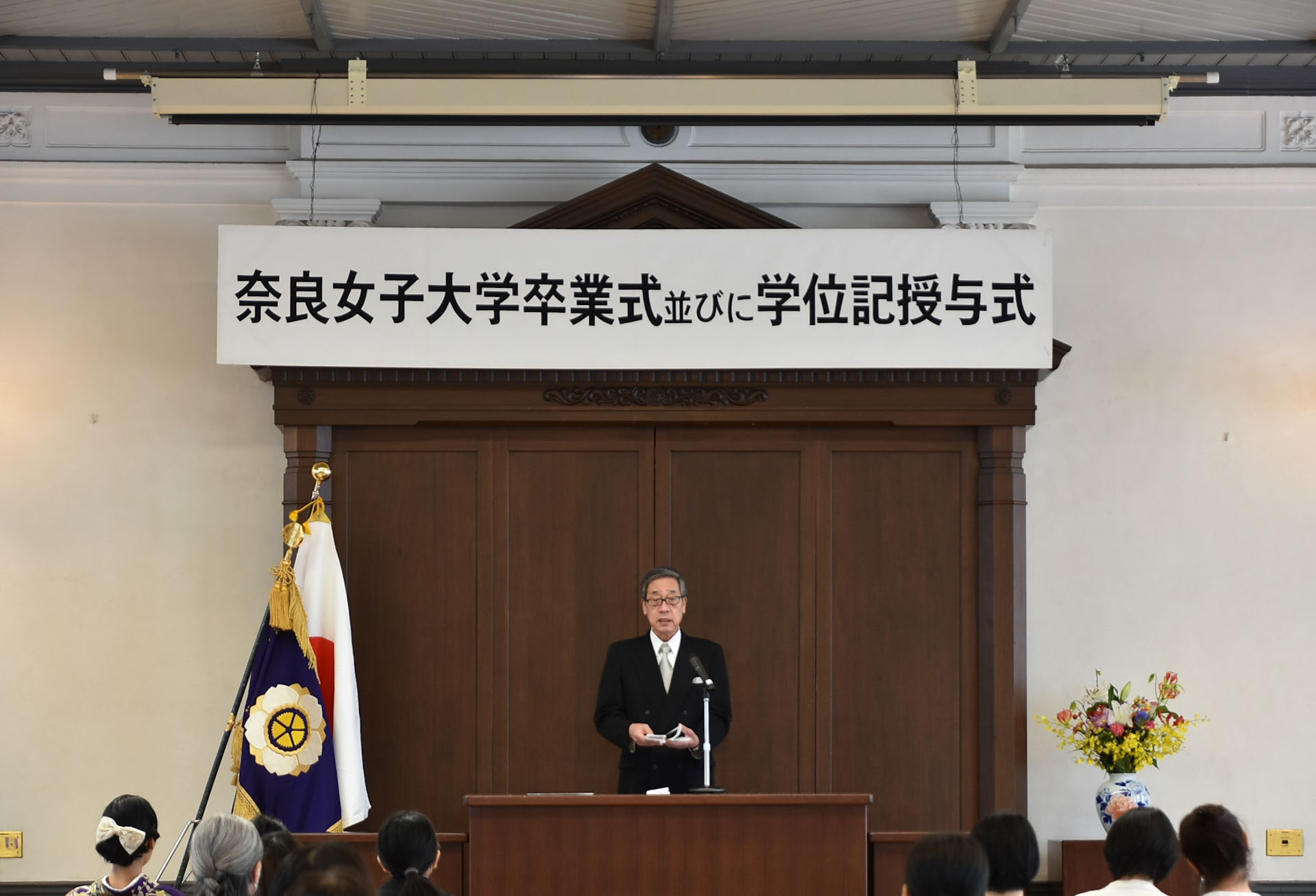 最後になりますが、私たち教職員は皆さんの成長と活躍が大きな喜びです。この奈良の地で学んだことを、全国に、あるいは母国に持ち帰って伝えてください。皆さんの前にある社会人生活あるいはさらなる学生生活が実り多いことを祈念してお祝いの言葉とします。