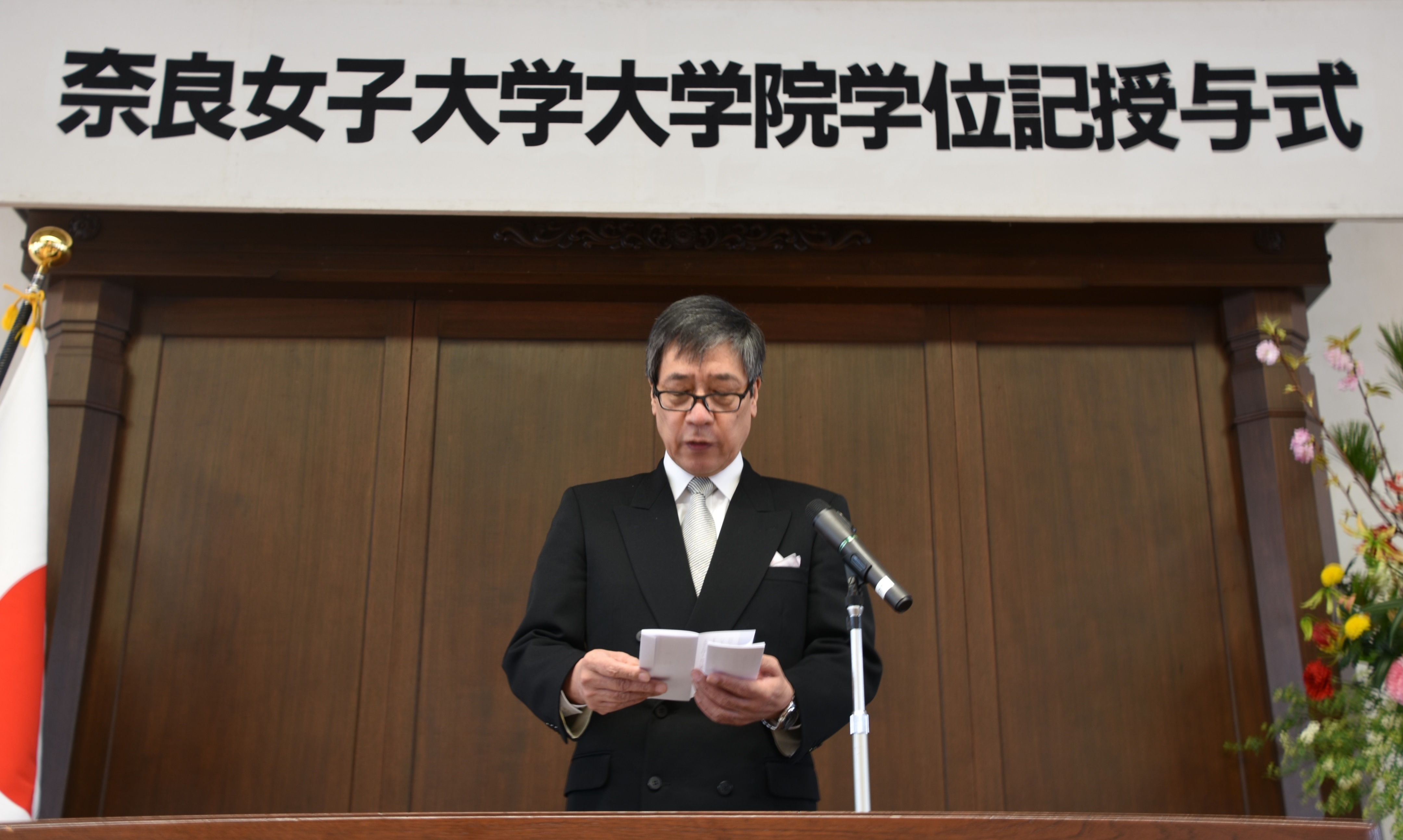 最後になりますが、奈良女子大学大学院人間文化研究科において切磋琢磨された皆さんが、知能・品格ともすばらしい指導者に成長されることを祈念してお祝いの言葉といたします。